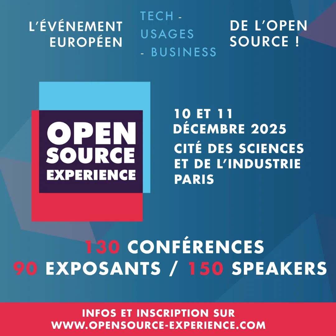 L’Open Source Experience est le plus grand événement français dédié à l’open source. C’est l’occasion pour nous de rencontrer la communauté, de présenter nos solutions et de discuter des enjeux du logiciel libre.
